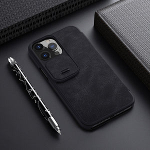 Elevate the look and security of your iPhone 13 Pro with the NILLKIN QIN Series Pro Leather Case. Experience the perfect blend of practicality and style.