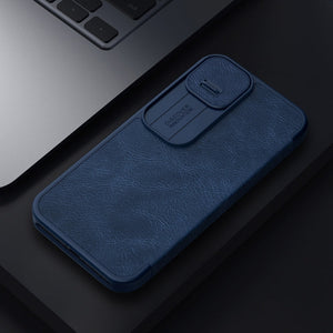 Upgrade your iPhone 13 Pro with the NILLKIN QIN Series Pro Sliding Camera Cover Design Crazy Horse Texture Horizontal Flip Leather Case in Blue. This sleek and versatile case offers more than just protection. Here's why it's a must-have: