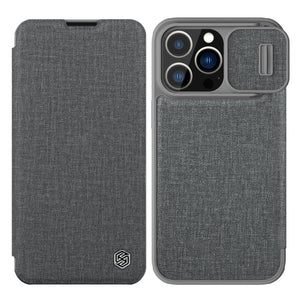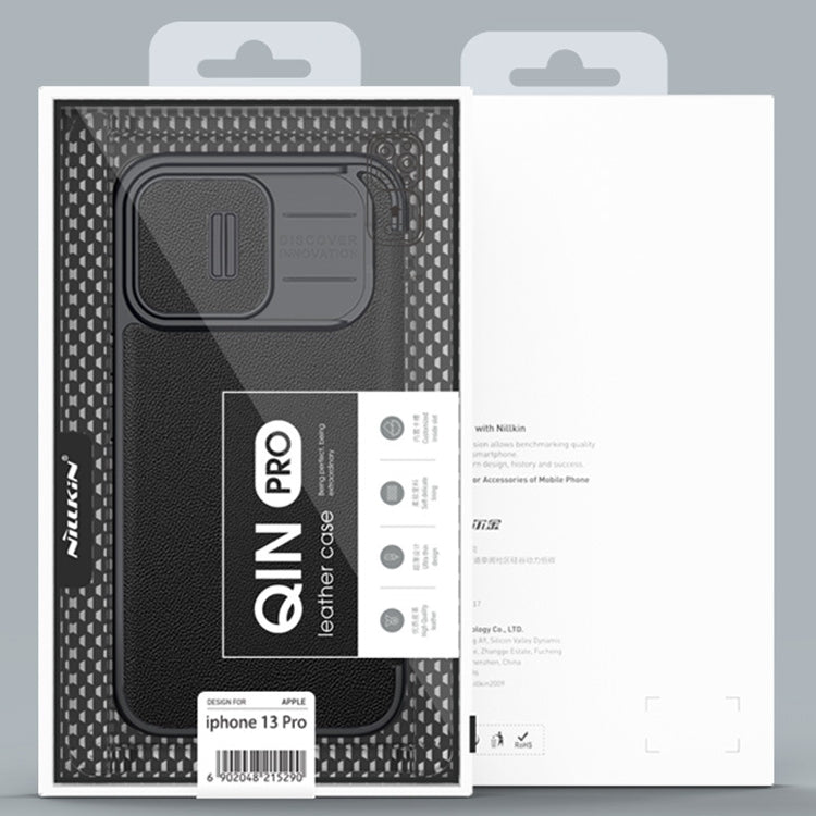 NILLKIN QIN Series Pro Sliding Camera Cover Leather Phone Case for iPhone 13 Pro (Grey)