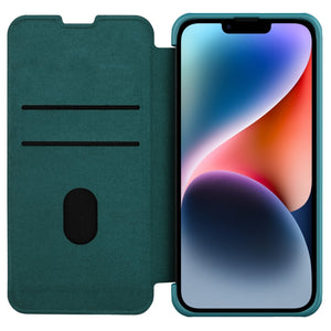 Upgrade your iPhone 14 with the NILLKIN QIN Series Pro Leather Phone Case in elegant green.