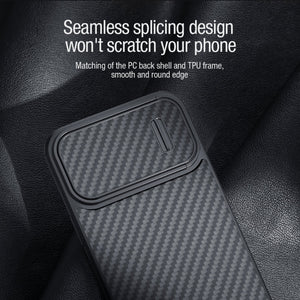 Elevate your iPhone 14 experience with the NILLKIN Synthetic Fiber Camshield Magnetic Phone Case, combining functionality and style seamlessly.