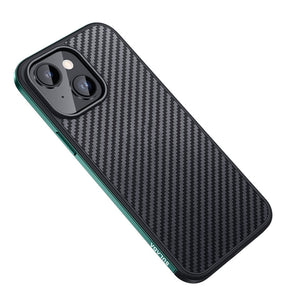 SULADA Dark Green Carbon Fiber Textured Case for iPhone 14 Plus