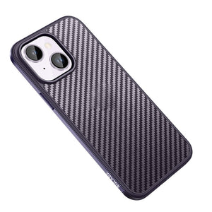 SULADA Carbon Fiber Textured Shockproof Metal + TPU Frame Case for iPhone 14 Plus (Dark Purple)