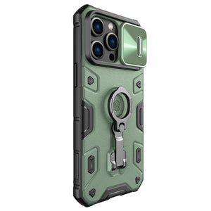 Introducing the NILLKIN CamShield Armor Pro Magnetic Phone Case in Green, designed to provide ultimate protection and style for your iPhone 14 Pro Max.