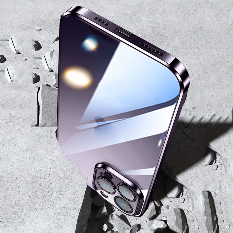 For iPhone 14 SULADA Lens Protector Plated Clear Case(Sierra Blue)
