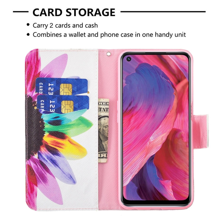 Sun Flower Pattern Leather Case with Card Slots for OPPO A74 / A93 / A54 5G