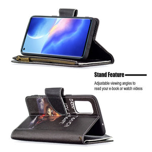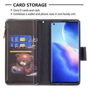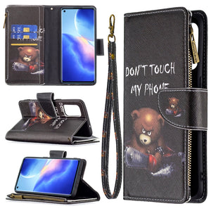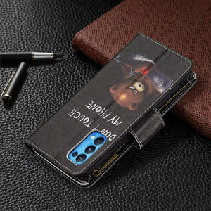 Protect your OPPO Reno5 5G with the charming Colored Drawing Pattern Zipper Horizontal Flip Leather Case. This case features: