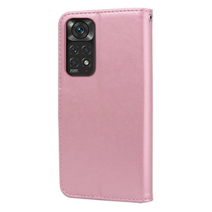 Rose Gold Rose Embossed Leather Phone Case for Redmi Note 11 and Note 11S Global Version