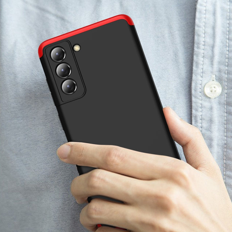 GKK Three Stage Splicing Full Coverage PC Case for Samsung Galaxy S21 FE (Black Red)