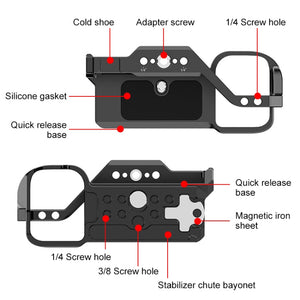 - Seamless Adaptability: The cage features multiple 1/4" and 3/8" screw holes, allowing for effortless connection with various accessories such as external monitors, follow focus systems, tripods, and microphones.