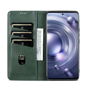 Dark Green AZNS Magnetic Calf Texture Leather Phone Case for vivo X80 Pro