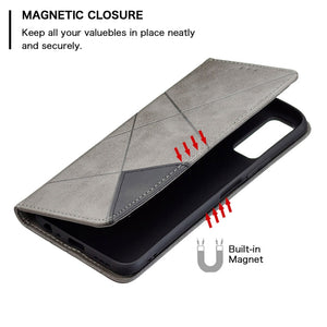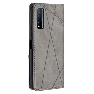 Rhombus Textured Magnetic Leather Case for vivo Y20 (Grey) with Holder & Card Slots