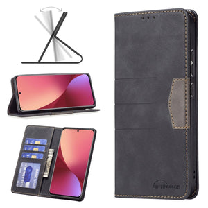 Magnetic Black Leather Phone Case for Xiaomi 12 with Convenient Holder Design