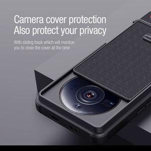 Enhance the protection and style of your Xiaomi 12S Ultra with the NILLKIN 3D Textured Camshield PC + TPU Phone Case in Black.