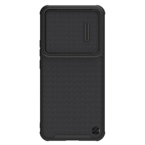 Introducing the NILLKIN 3D Textured Camshield PC + TPU Phone Case in sleek black. This phone case offers the perfect blend of style and functionality, ensuring your device remains protected while exuding a modern and sophisticated look.