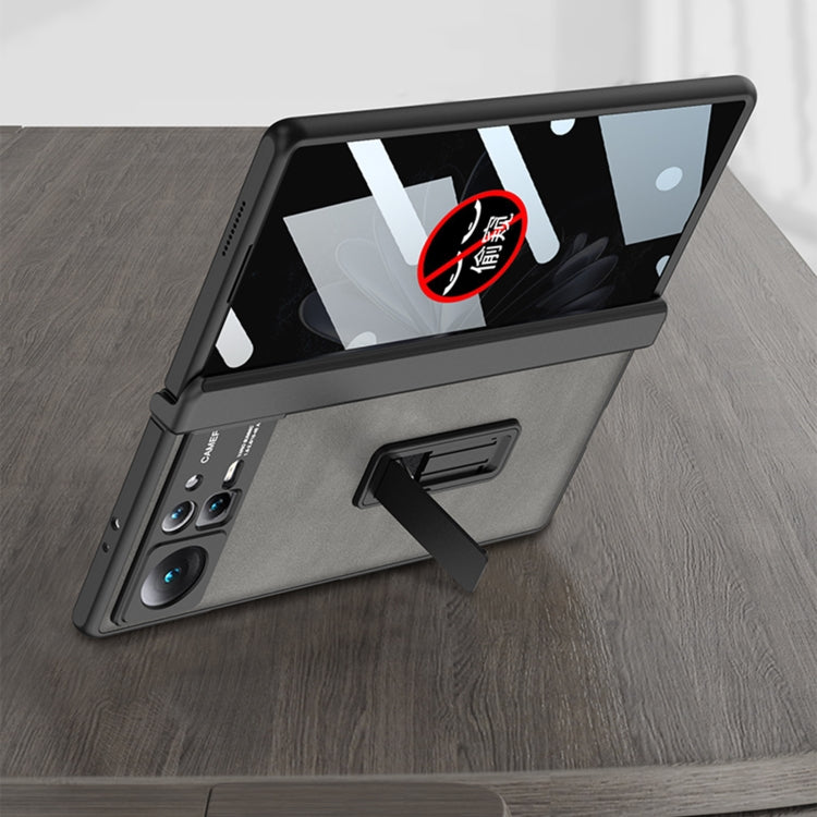Brown Leather Phone Case with Holder for Xiaomi Mix Fold 2 - GKK Integrated Peep-proof Fold Full Coverage