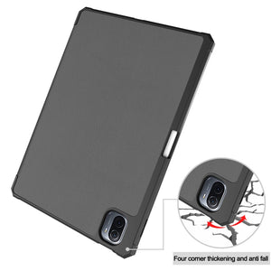 Grey Custer Texture Leather Case for Xiaomi Pad 5/5 Pro with Three-folding Holder & Sleep/Wake-up Function