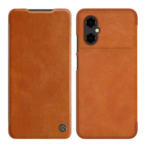 Elevate the look and protection of your Xiaomi Poco M4 5G with the NILLKIN QIN Series Crazy Horse Texture Leather Phone Case in elegant brown.