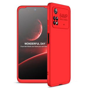 Enhance the protection and style of your Xiaomi Poco M4 Pro with the GKK Three Stage Splicing Full Coverage PC Phone Case in striking red.
