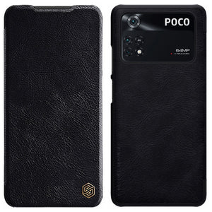 Enhance the look and protection of your Xiaomi Poco M4 Pro with the NILLKIN QIN Series Crazy Horse Texture Leather Phone Case in black.