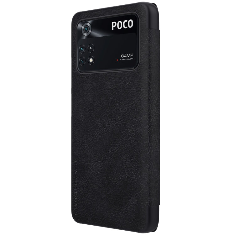 NILLKIN QIN Series Crazy Horse Texture Leather Phone Case for Xiaomi Poco M4 Pro - Black