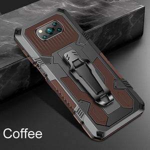 Enhance the durability and style of your Xiaomi Poco X3 with the Armor Warrior Shockproof PC + TPU Protective Case in Coffee.