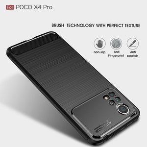 Black Brushed Texture Carbon Fiber TPU Phone Case for Xiaomi Poco X4 Pro 5G