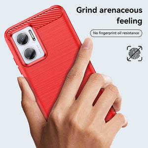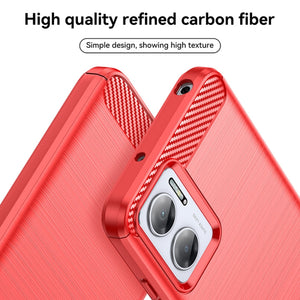 Enhance the look and durability of your Xiaomi Redmi 10 Prime+ 5G with this sleek and protective brushed texture carbon fiber TPU case in striking red.