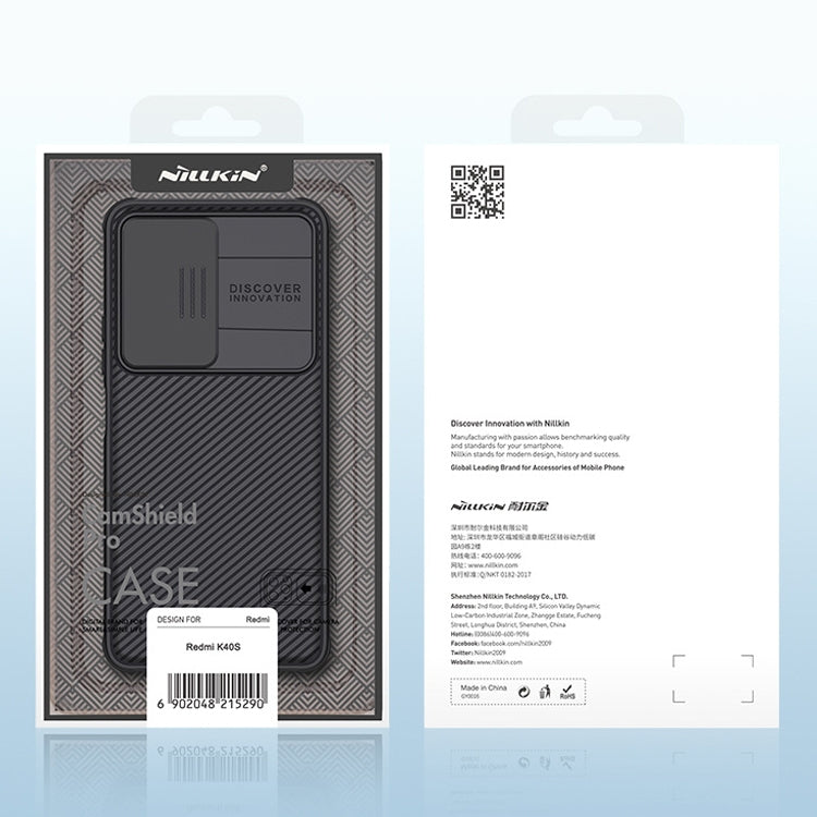 Enhance the protection and style of your Xiaomi Redmi K40S with the NILLKIN CamShield Pro Series PC Full Coverage Phone Case in sleek black.
