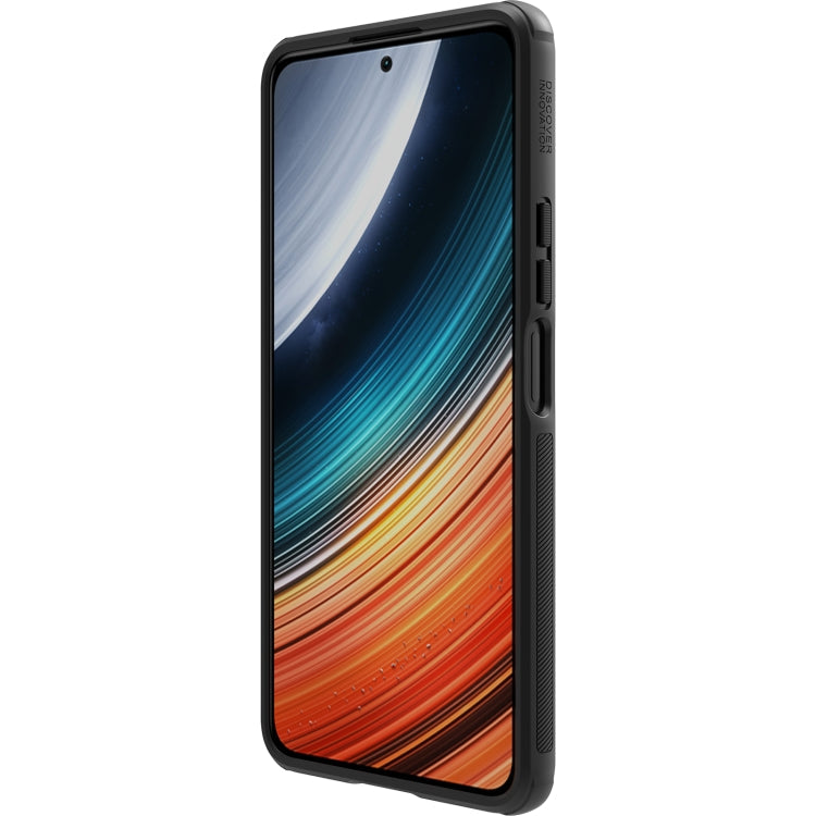 Introducing the NILLKIN Frosted Shield Pro PC + TPU Phone Case in sleek black. This case is designed to provide the best protection for your Xiaomi Redmi K40S while maintaining its functionality and style.