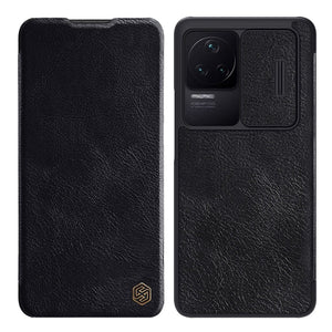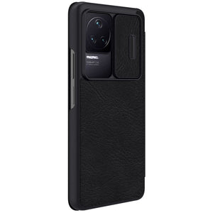 Enhance the safety and elegance of your Xiaomi Redmi K50 / K50 Pro with the NILLKIN QIN Series Pro Sliding Camera Cover Leather Phone Case in sleek black.