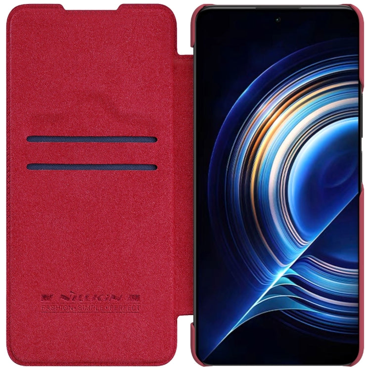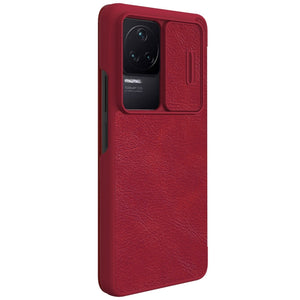 NILLKIN QIN Series Pro Sliding Camera Cover Leather Phone Case for Xiaomi Redmi K50 / K50 Pro in Red