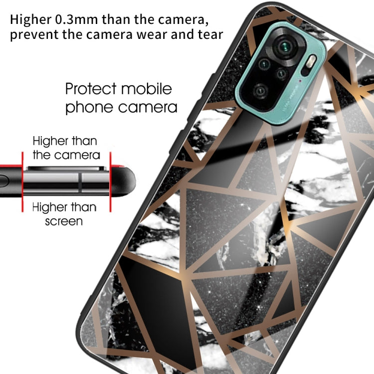 Abstract Marble Pattern Glass Protective Case for Xiaomi Redmi Note 10 (Rhombus Black)
