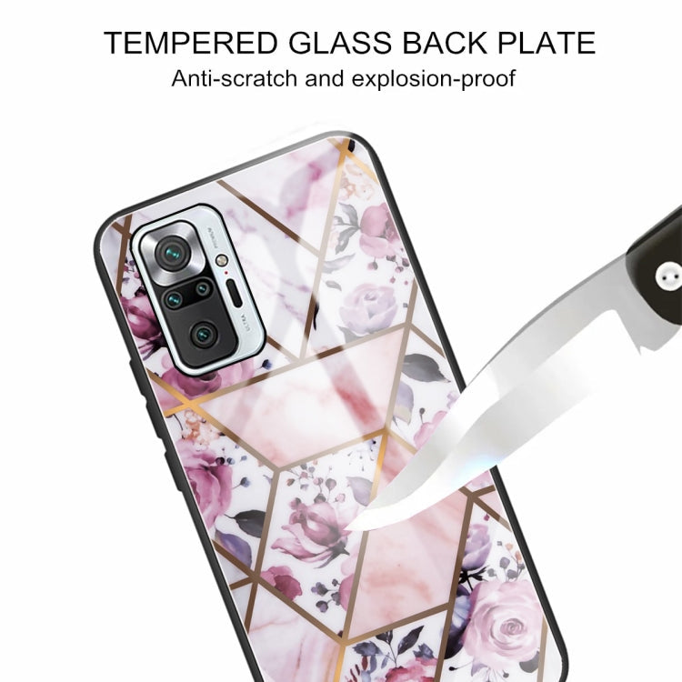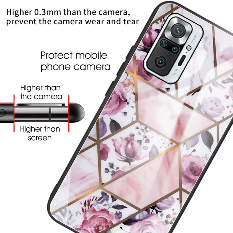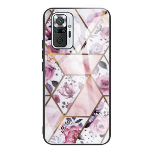 Abstract Marble Pattern Glass Protective Case for Xiaomi Redmi Note 10 Pro / Note 10 Pro Max (Rhombus Rose)