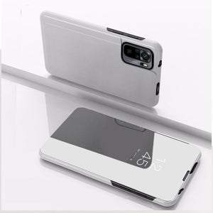 Xiaomi Redmi Note 10 Pro Mirror Flip Leather Case with Holder (Silver)