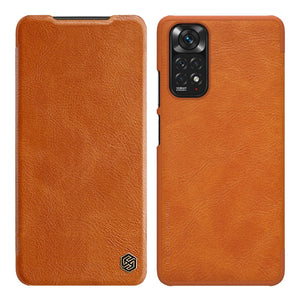 Enhance the protection and style of your Xiaomi Redmi Note 11S with the NILLKIN QIN Series Crazy Horse Texture Leather Case in Brown.