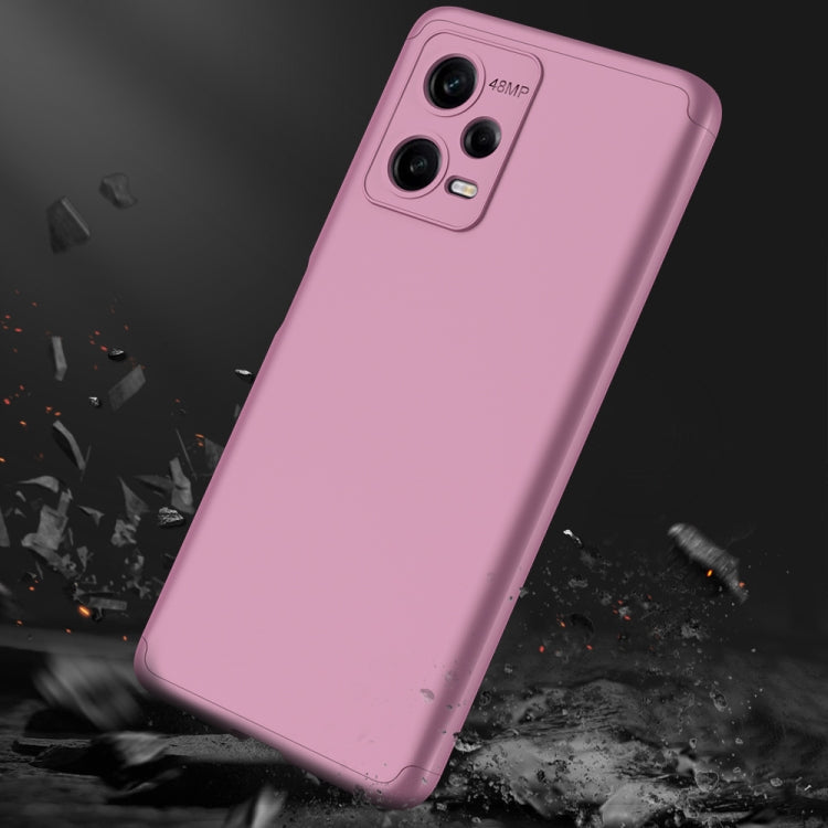 Enhance the protection and style of your Xiaomi Redmi Note 12 5G with the GKK Three Stage Splicing Full Coverage PC Phone Case in elegant Rose Gold.