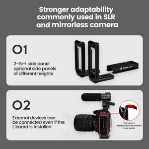 - Secure Mounting: The L-mount features a rubberized contact surface for a secure and gentle grip on your camera, providing peace of mind during shoots.