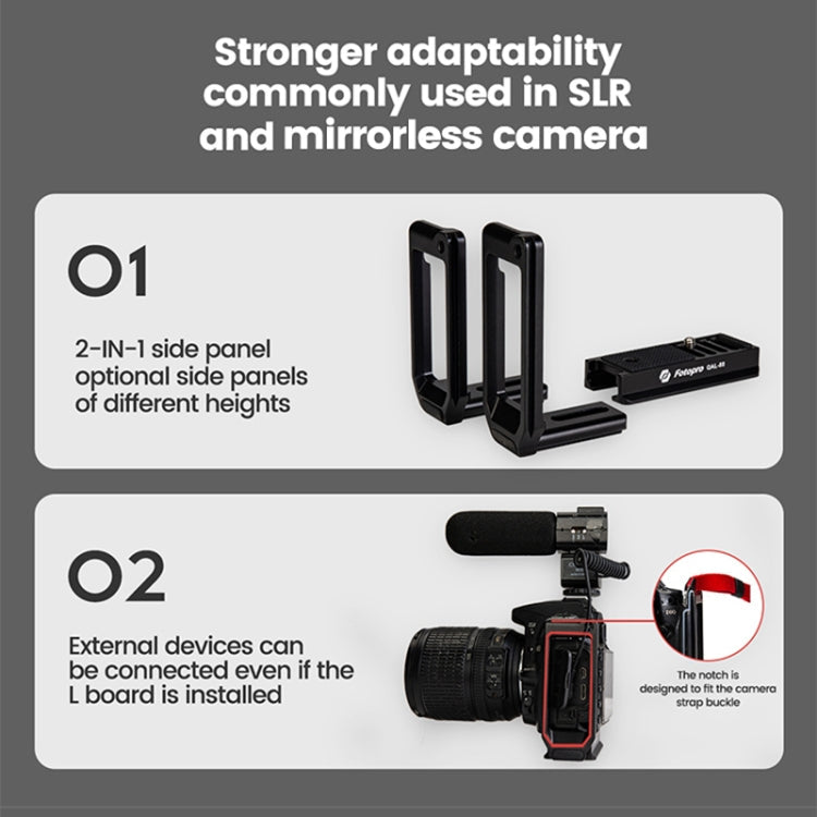 Elevate your photography game and unlock new shooting possibilities with the Fotopro QAL-88 2 in 1 Vertical Shoot Quick Release L Plate Bracket Base Holder. Whether you're a professional photographer or an enthusiastic hobbyist, this accessory is designed to enhance your camera setup, providing stability, flexibility, and ease of use for your creative endeavors.
