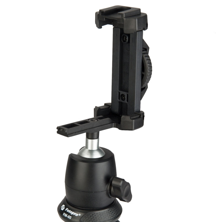 Introducing the Fotopro RM-80 Mini Desktop Tripod Mount with MH-8 Ball Head and Phone Clamp in sleek black finish. This versatile tripod mount offers a range of features to enhance your photography and videography experience:
