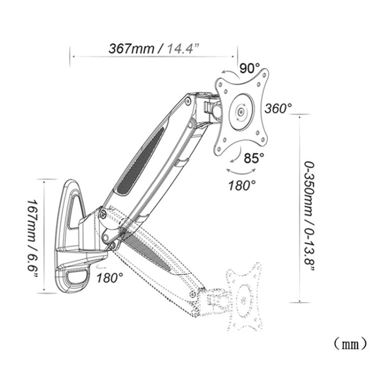 - Adjustable pitch angle from +90 degrees to -85 degrees for customized viewing