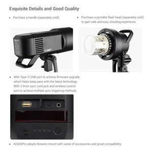 Godox AD600 Pro WITSTRO 600Ws All-in-One Outdoor Flash With 2.4GHz Speedlite Light(EU Plug)