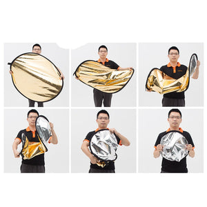 Elevate your photography game with the versatile Godox FT01 80cm Round 2 in 1 Gold / Silver Folding Reflector Board. This reflector board offers two distinct reflecting surfaces, gold and silver, allowing you to achieve the precise effect you desire. The wavy texture fabric optimizes reflection, ensuring even and spot-free lighting for your shots. With its generous fill-in area, this round reflector is perfect for capturing full-body images. Plus, it conveniently folds for easy storage, making it a must-have for both studio and outdoor photography.