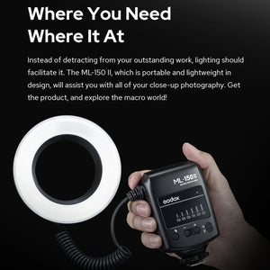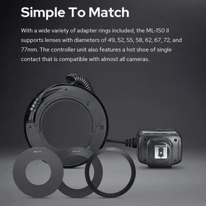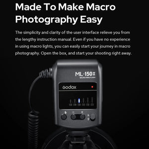 Godox ML-150II On-camera Macro Ring Flash Light with 8 Different Size Adapter Rings (Black)