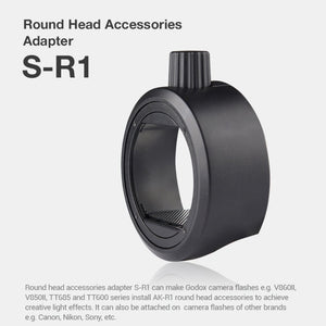 Experience Versatile Lighting: The Godox S-R1 Flash Speedlite Round Shape Adapter is designed to elevate your photography game by allowing you to install AK-R1 round head accessories onto your Godox camera flashes such as 860III/V860II, V850II, TT685, and TT600 series. This opens up a world of creative lighting effects to enhance your shots.