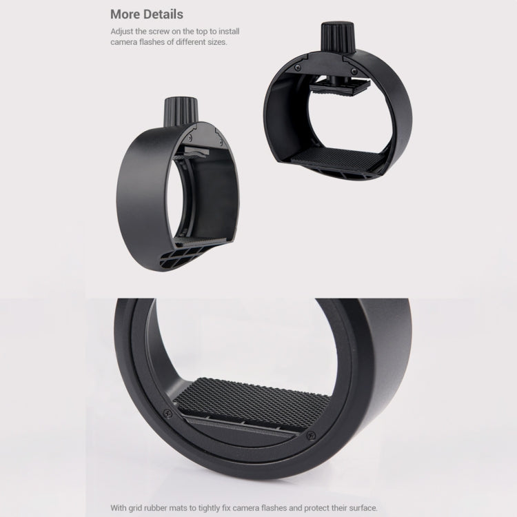 - Secure and Protective: The adapter is designed to firmly hold the camera flash in place, with a mesh rubber pad to protect its surface from scratches or damage.