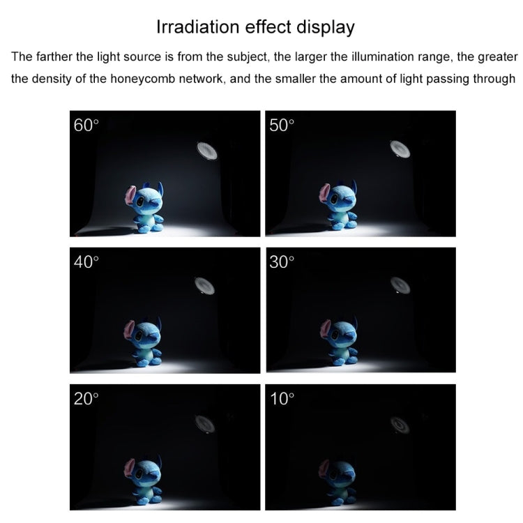 With a 30° density, this honeycomb mesh reflector offers a smaller irradiation range and a controlled amount of light passing through, allowing you to create stunning, professional-grade lighting effects. The 17cm diameter and 0.8kg weight make it a versatile and portable addition to your lighting kit.