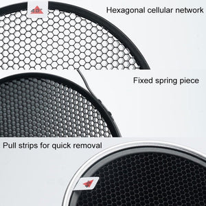 - Adjustable Light Density: Equipped with 6 aperture sizes, the honeycomb mesh reflector offers versatile density options to tailor the light output to your specific needs.