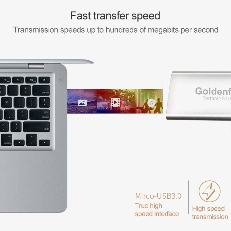 Experience high-speed data transmission with the Goldenfir NGFF to Micro USB 3.0 Portable Solid State Drive. With a USB 3.0 interface, enjoy lightning-fast transmission speeds of up to 100 megabits per second, enabling you to transfer a 1G movie in just 10 seconds.
