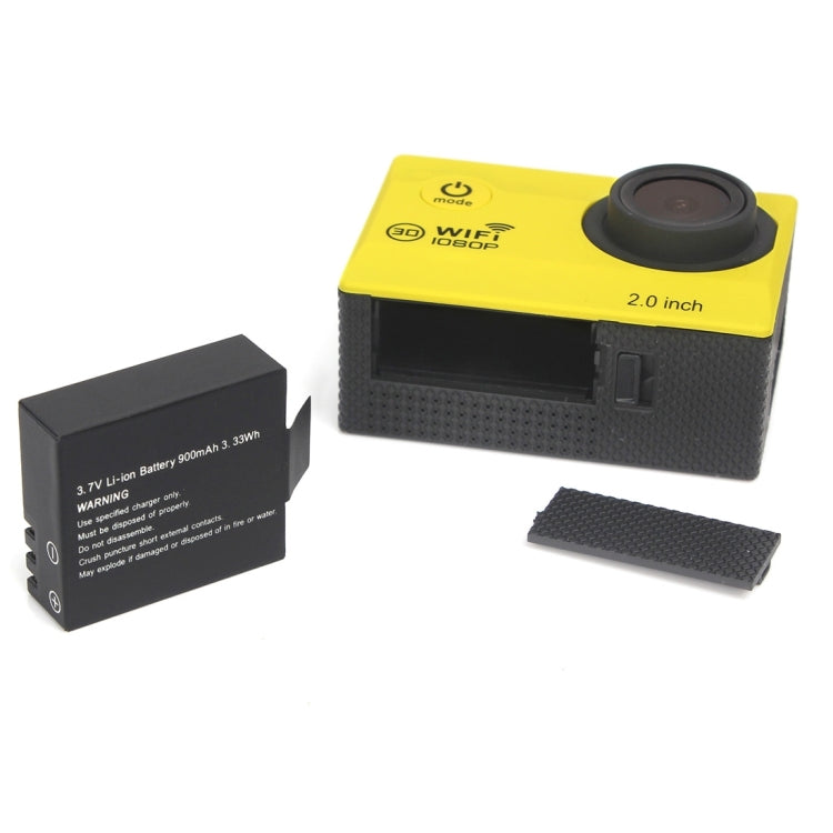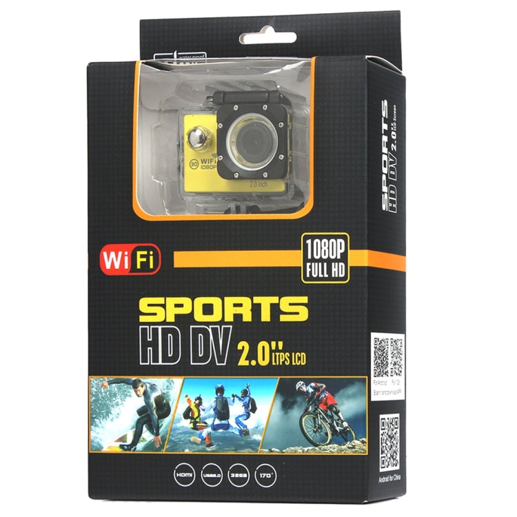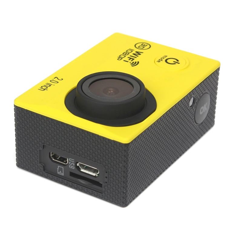 1080P Waterproof Sports Camera with Wide Angle Lens and WiFi (Yellow)